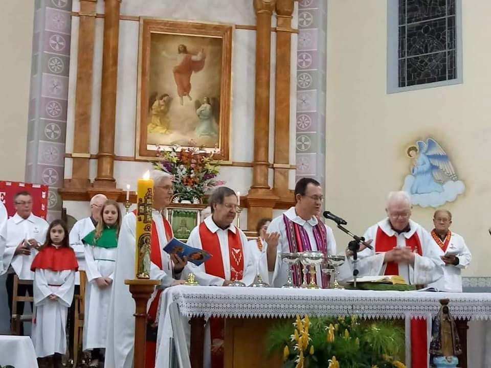 Neste domingo, dia 06 de outubro, encerrou a peregrinação da imagem do Sagrado Coração de Jesus às comunidades da Paróquia Ascensão do Senhor, em Santo Cristo/RS. Com a Igreja Matriz completamente lotada, a celebração festiva foi presidida pelo Pe. Carlos Griebeler e concelebrada pelos vigários paroquiais.