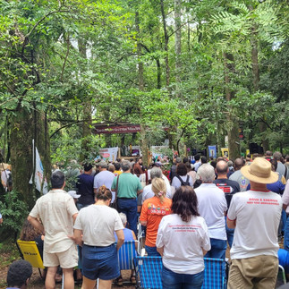 A manhã foi concluída com a Santa Missa no altar do bosque, presidida por Dom Liro e concelebrada pelos demais bispos e sacerdotes presentes. Na homilia, o bispo destacou a vida comunitária como um dos grandes legados das reduções missioneiras — verdadeiro modelo de sociedade sem desigualdade nem pobreza — e reforçou: