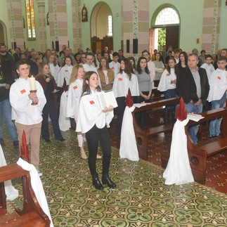 No último sábado, dia 28 de maio, com a presença de Dom Liro Vendelino Meurer, Bispo Diocesano, foi celebrado o Sacramento da Crisma de 28 jovens da Paróquia Ascensão do Senhor, de Santo Cristo. A celebração aconteceu na Igreja Matriz e foi acompanhada pelos pais, padrinhos e familiares dos jovens. A comunidade agradece aos catequistas Deisi, Fernando e Mário por estes anos de dedicação e acompanhamento na missão de evangelizar.
